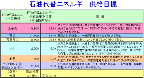 ・日本の石油代替エネルギー供給の見通し(原子力発電の比率)