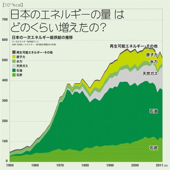 日本の一次エネルギー総供給の推移(1950-2011年)